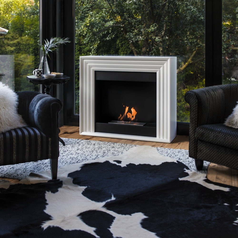 Die schlichte, elegante Form und das Material des Biokamins Planet portal erinnern perfekt an einen traditionellen Kamin. Planet wurde in einem geometrischen Stil mit glatten Riffelungen entworfen, der gut zu Glam- oder Loft-Einrichtungen passt. Die schlichte Form mit zusätzlichen Linien ist eine großartige Ergänzung für jedes Haus.