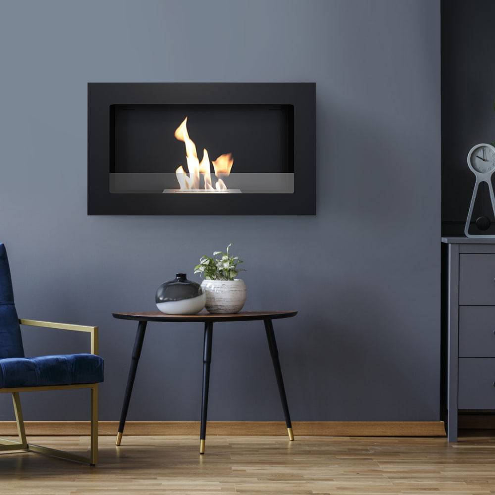 Golf 2 ist ein wandmontierter Biokamin. Es gibt zwei Montagemöglichkeiten: Sie können es entweder mit den im Set enthaltenen Befestigungsdübeln an die Wand hängen oder in eine individuelle Wandverkleidung oder Nische einbauen.